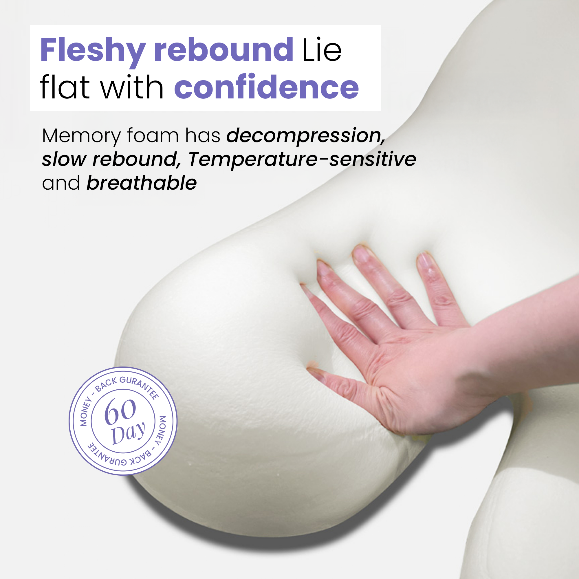 • Dual-height neck cradle supports lymph flow, minimizing morning puffiness